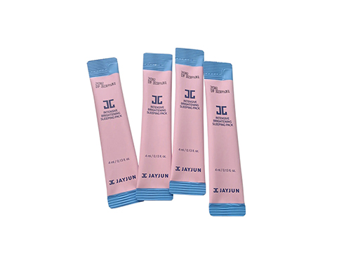 免洗面膜包裝機(jī)適用于蛋殼面膜膏、晚安凍膜、睡眠面膜、晚安面膜等化妝品液體物料進(jìn)行包裝,袋子類型有背封切圓角、背封鋸齒切口、易撕口等。